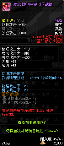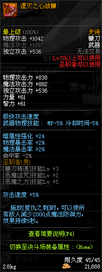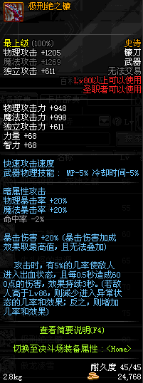 | 80 | 极刑绝之镰 | *人间界卡奴鲁克 掉落 (能源中心地区的深渊地下城) | * 暗属性 | |
