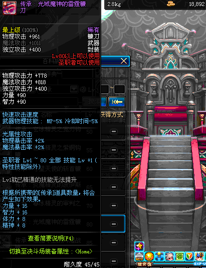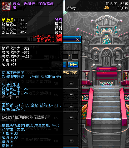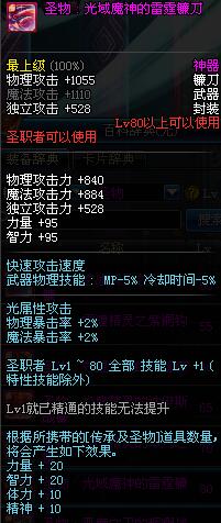 | 80 | 圣物 : 光域魔神的雷霆镰刀 | *Lv80~86普通地下城怪物掉落 | ||