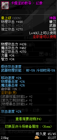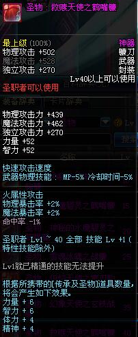 | 40 | 圣物 : 救赎天使之鹤嘴镰 | *Lv39~46普通地下城怪物掉落 |