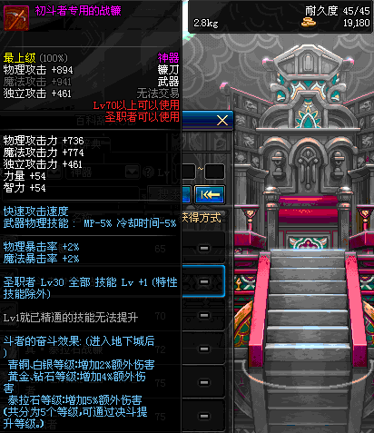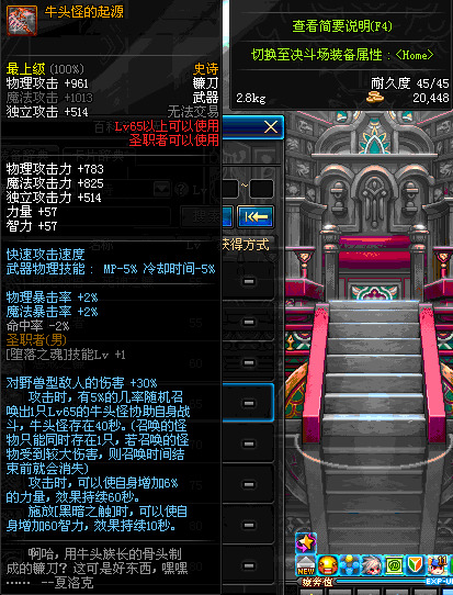 | 45 | 末日浩劫之镰 | *Lv45~51普通地下城怪物掉落 *在加百利的神秘商店购买 |
