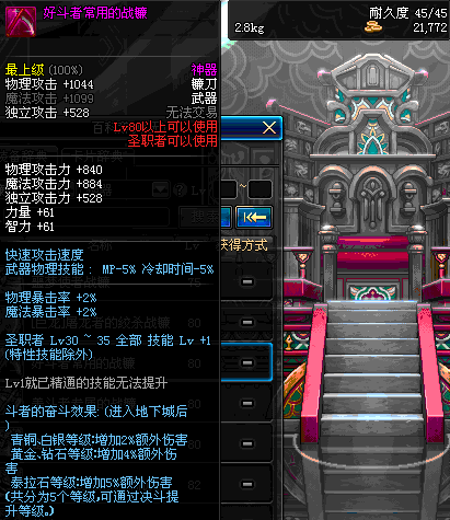 | 35 | 酒神的战镰 | *Lv34~41普通地下城怪物掉落 *在加百利的神秘商店购买 |