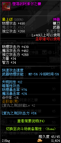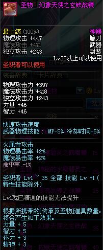 | 35 | 圣物 : 幻象天使之玄铁战镰 | *Lv34~41普通地下城怪物掉落 |
