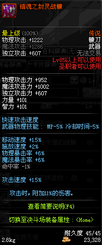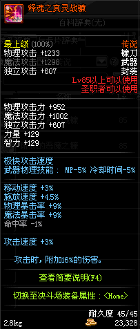 | 85 | 镇魂之封灵战镰 | *时空之门地区 - 吟游诗人艾丽丝 出售 (镇魂之石×100) *购买镇魂武器礼盒(低级镇魂之石×140) |