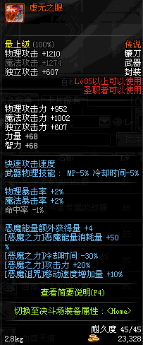 | 85 | 虚无之眼 | *吞噬之厄伽勒 掉落(地下城:能量阻截战 12图) *设计图(能量阻截战 登场的NPC加百利 出售) |