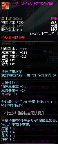 | 30 | 圣物 : 炽焰天使之宽刃钩镰 | *Lv29~36普通地下城怪物掉落 |