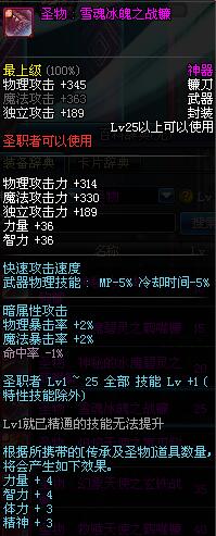 | 25 | 雪魂冰魄之战镰 | *Lv24~31普通地下城怪物掉落 | ||