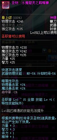 | 15 | 圣物 : 水魔碧灵之鹤嘴镰 | *Lv13~21普通地下城怪物掉落 |
