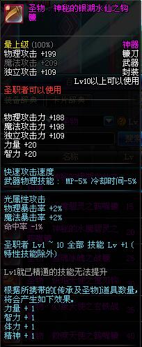 | 20 | 圣物 : 神秘的水魔碧灵之鹤嘴镰 | *Lv19~26普通地下城怪物掉落 | ||