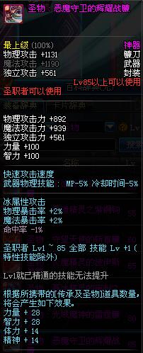 | 85 | 圣物 : 恶魔守卫的辉耀战镰 | *Lv85~91普通地下城怪物掉落 | ||