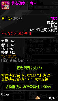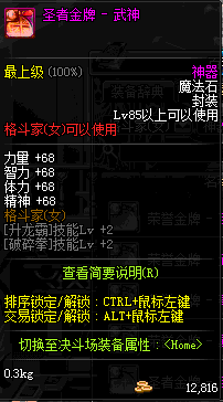 | 辅助装备: | 全职业 鬼剑士 女鬼剑 女格斗 男格斗 神枪手 女枪手 魔法师 男法师 圣职者 暗夜使者 守护者 |
