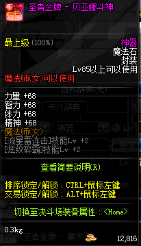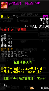 | 辅助装备: | 全职业 鬼剑士 女鬼剑 女格斗 男格斗 神枪手 女枪手 魔法师 男法师 圣职者 暗夜使者 守护者 |