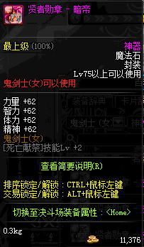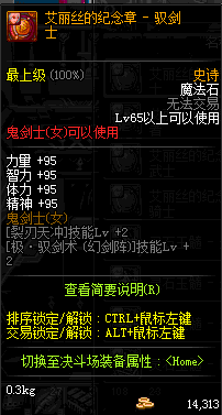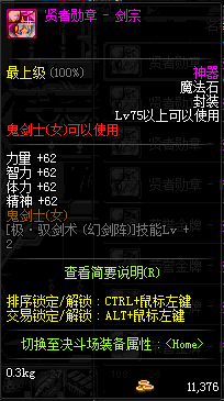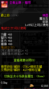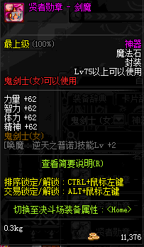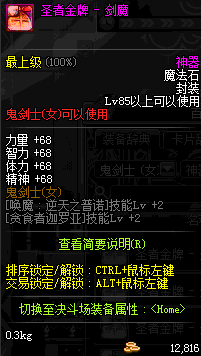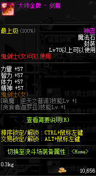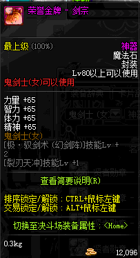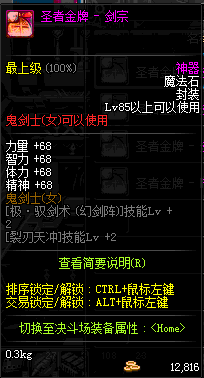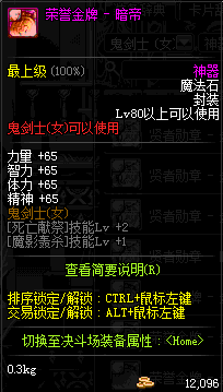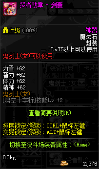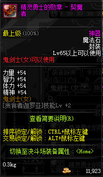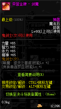 | 辅助装备: | 全职业 鬼剑士 女鬼剑 女格斗 男格斗 神枪手 女枪手 魔法师 男法师 圣职者 暗夜使者 守护者 |