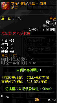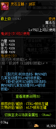| 史诗 魔法石-鬼剑士(女) | ||||