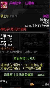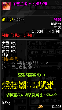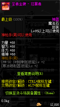 | 辅助装备: | 全职业 鬼剑士 女鬼剑 女格斗 男格斗 神枪手 女枪手 魔法师 男法师 圣职者 暗夜使者 守护者 |