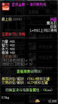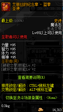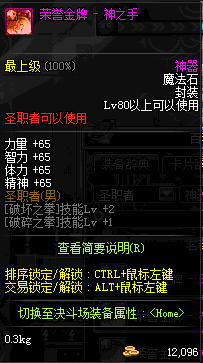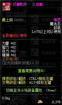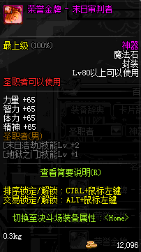 | 辅助装备: | 全职业 鬼剑士 女鬼剑 女格斗 男格斗 神枪手 女枪手 魔法师 男法师 圣职者 暗夜使者 守护者 |