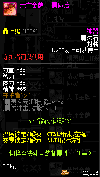 | 辅助装备: | 全职业 鬼剑士 女鬼剑 女格斗 男格斗 神枪手 女枪手 魔法师 男法师 圣职者 暗夜使者 守护者 |