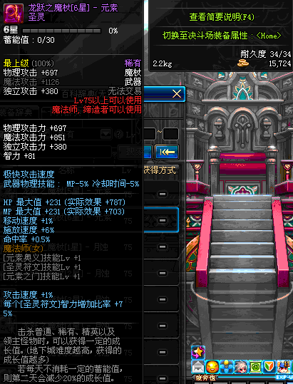 | 75 | 龙跃之魔杖[6星] – 元素圣灵 | *完成二次觉醒任务后可以从NPC小铁柱处获得此道具。 | ||