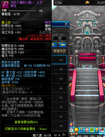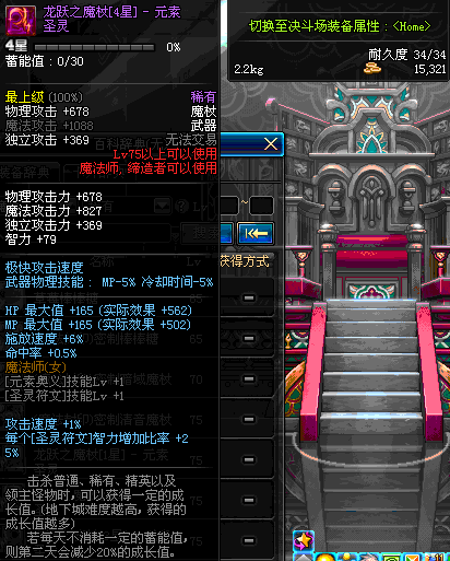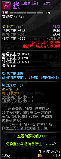 | 75 | 龙跃之魔杖[4星] – 元素圣灵 | *完成二次觉醒任务后可以从NPC小铁柱处获得此道具。 | ||