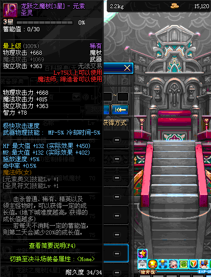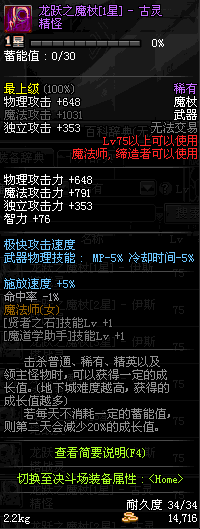 | 75 | 龙跃之魔杖[2星] – 元素圣灵 | *完成二次觉醒任务后可以从NPC小铁柱处获得此道具。 | ||