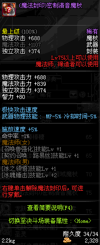 | 50 | 魔音护魂魔杖 | *Lv50~56普通地下城怪物掉落 *在加百利的神秘商店购买 |