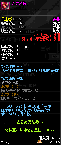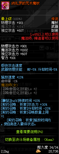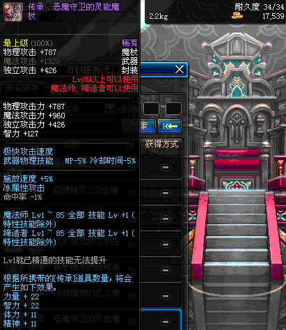 | 85 | 圣物 : 恶魔守卫的灵能魔杖 | *Lv85~91普通地下城怪物掉落 | ||