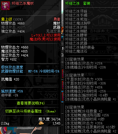 | 65 | 冰龙魔杖 | *Lv64~71深渊地下城怪物掉落 *在NPC沉默之克雷娅的物品店购买 |