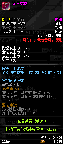 | 35 | 流星魔杖 | *Lv34~41普通地下城怪物掉落 *在加百利的神秘商店购买 |