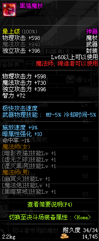 | 60 | 黑猫魔杖 | *Lv58~66普通地下城怪物掉落 *在加百利的神秘商店购买 |