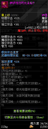 | 55 | 伊莎杜拉的元素魔杖 | *伊莎杜拉 掉落(地下城: 无尽的噩梦) *在NPC敏泰的物品店购买(阿拉德陨石×330) |