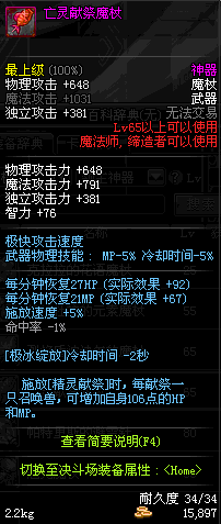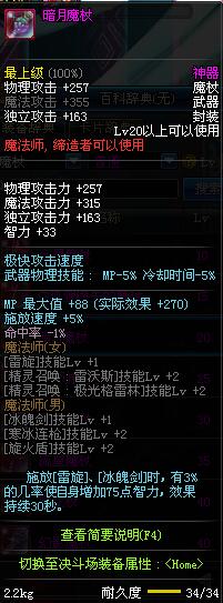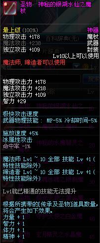 | 30 | 圣物 : 雪魂冰魄之银制魔杖 | *Lv29~36普通地下城怪物掉落 |