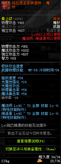 | 35 | 圣物 : 极光天使之黄金魔杖 | *Lv34~41普通地下城怪物掉落 |