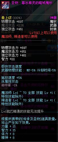 | 70 | 圣物 : 暮冰精灵的暗域魔杖 | *Lv70~76普通地下城怪物掉落 |