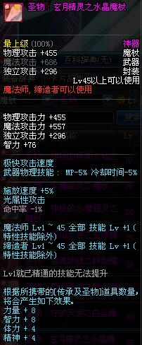 | 45 | 圣物 : 玄月精灵之水晶魔杖 | *Lv45~51普通地下城怪物掉落 |