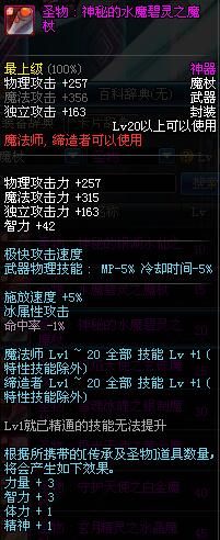 | 20 | 圣物 : 神秘的水魔碧灵之魔杖 | *Lv19~26普通地下城怪物掉落 | ||