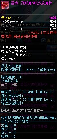 | 80 | 圣物 : 烈域魔神的炙炎魔杖 | *Lv80~86普通地下城怪物掉落 | ||
