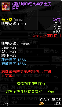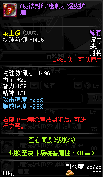 | 80 | 圣物 :天马守护神的狼皮斗篷 | *Lv80~86普通地下城怪物掉落 | ||