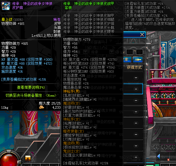 | 45 | 圣物 :战争女神的狼皮护肩 | *Lv45~51普通地下城怪物掉落 |