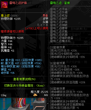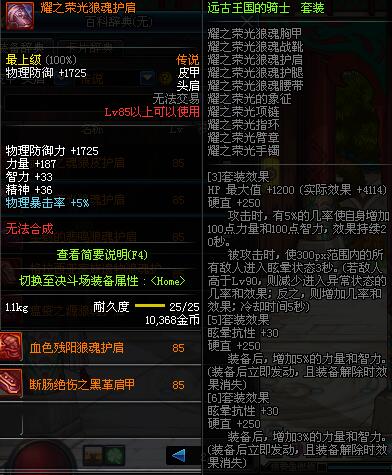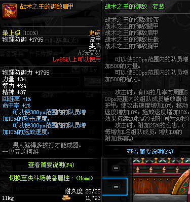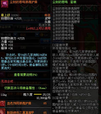 | 85 | 战术之王的御敌肩甲 | *Lv84~91深渊地下城怪物掉落 | 战术之王的御敌 套装 | |