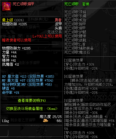 | 85 | 冥殇之刃肩甲 | *Lv84~91深渊地下城怪物掉落 | 杀意决 套装 | |
