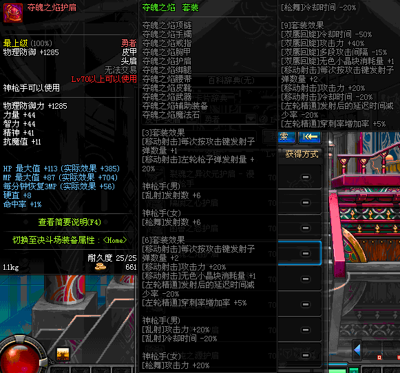 | 85 | 血色残阳狼魂护肩 | *昨日之巴斯顿 掉落 (在远古地下城里出没。) *从NPC鲁特的物品店出售的[血色残阳防具礼盒]中获得 |