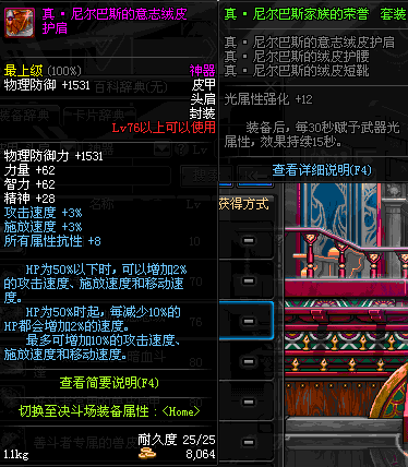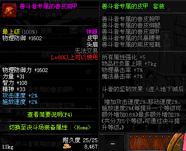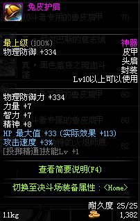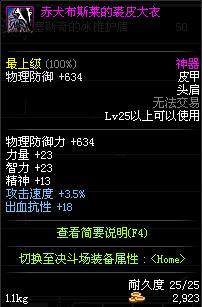 | 25 | 赤犬布斯莱的裘皮大衣 | *赤犬布加迪 掉落(赫顿玛尔旧街区) *在NPC阿尔伯特·伯恩斯坦的物品店购买(阿拉德陨石×37) |