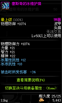 | 50 | 塞斯奇的冰锥护肩 | *塞斯奇 掉落(黑色雪山) *在NPC敏泰的物品店购买(阿拉德陨石×174) |
