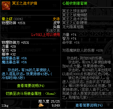 | 70 | 冥王之诡术护肩 | *Lv69~76深渊地下城怪物掉落 | 心脏收割者套装 | |