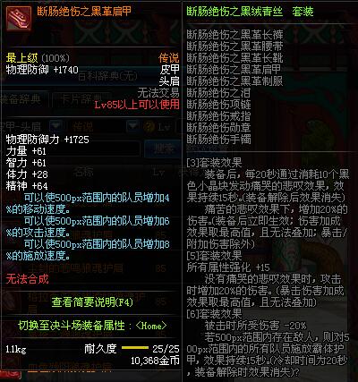 | 85 | 断肠绝伤之黑革肩甲 | *昨日之巴斯顿 掉落 (在远古地下城里出没。) *从NPC鲁特的物品店出售的[断肠绝伤防具礼盒]中获得 |