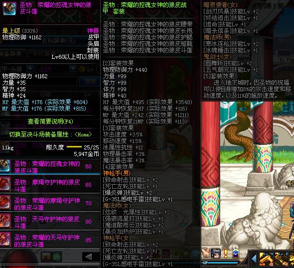 | 60 | 圣物 :荣耀的控魂女神的狼皮斗篷 | *Lv58~66普通地下城怪物掉落 |
