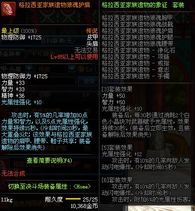 | 85 | 格拉西亚家族遗物狼魂护肩 | *昨日之巴斯顿 掉落 (在远古地下城里出没。) *从NPC鲁特的物品店出售的[格拉西亚家族遗物 - 防具礼盒]中获得 |