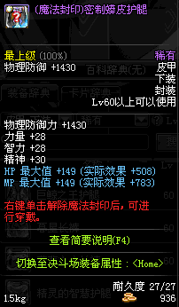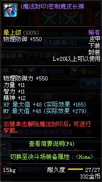 | 20 | (魔法封印)密制鹿皮长裤 | *Lv19~26普通地下城怪物掉落 *完成[烦人的蚂蚁]任务 *使用Lv19~26怪物掉落的设计图进行制作 |