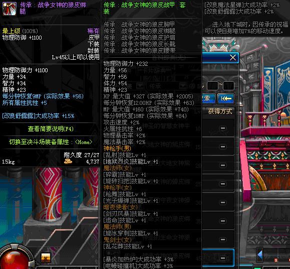 | 45 | 圣物 :战争女神的狼皮绑腿 | *Lv45~51普通地下城怪物掉落 |