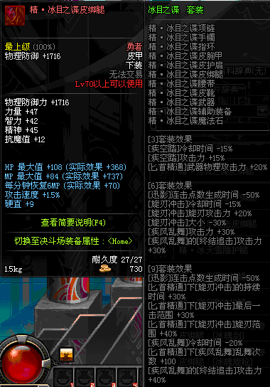 | 85 | 战术之王的御敌腿甲 | *Lv84~91深渊地下城怪物掉落 | 战术之王的御敌 套装 | |