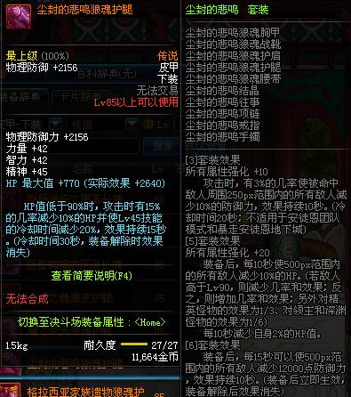 | 85 | 尘封的悲鸣狼魂护腿 | *昨日之巴斯顿 掉落 (在远古地下城里出没。) *从NPC鲁特的物品店出售的[尘封的悲鸣防具礼盒]中获得 |